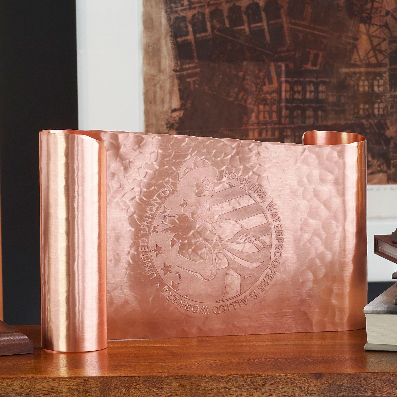Recognize a significant, once-in-a-lifetime moment with this impressive metal scroll award! Proudly handcrafted in the USA, this small free standing award measures 6" x 5" and will make a breathtaking addition to any office, home or trophy case. It's offered in your choice of aluminum, bronze or copper. Whether used for sales incentives, honoring years or service or any other special achievement, this award will say it all! Make a statement of unparalleled appreciation to any recipient with this fine metal gift!