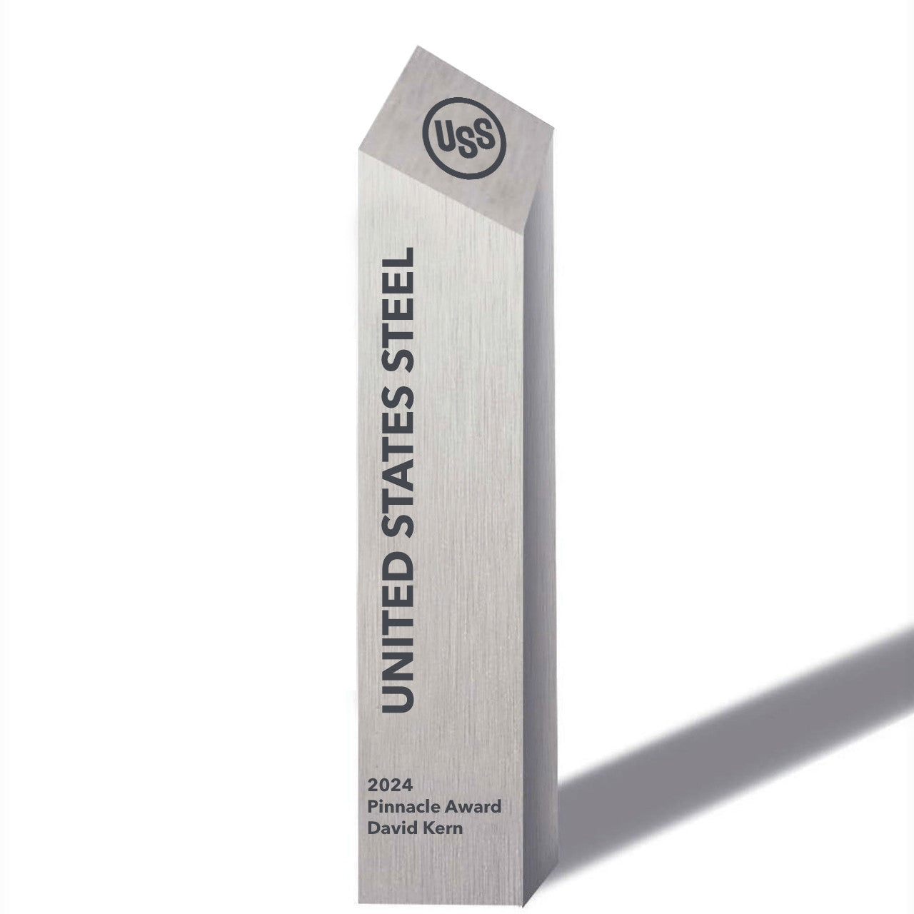 Celebrate, reward and motivate members of your organization with this custom incentive! For those who constantly strive for excellence, give them this handcrafted metal award that they will be proud to display. Featuring a unique angled design, each award showcases a laser engraved logo or message, along with an individual's name. Set your award program apart from the rest by ordering this item today! Medium award - 7.25" tall.