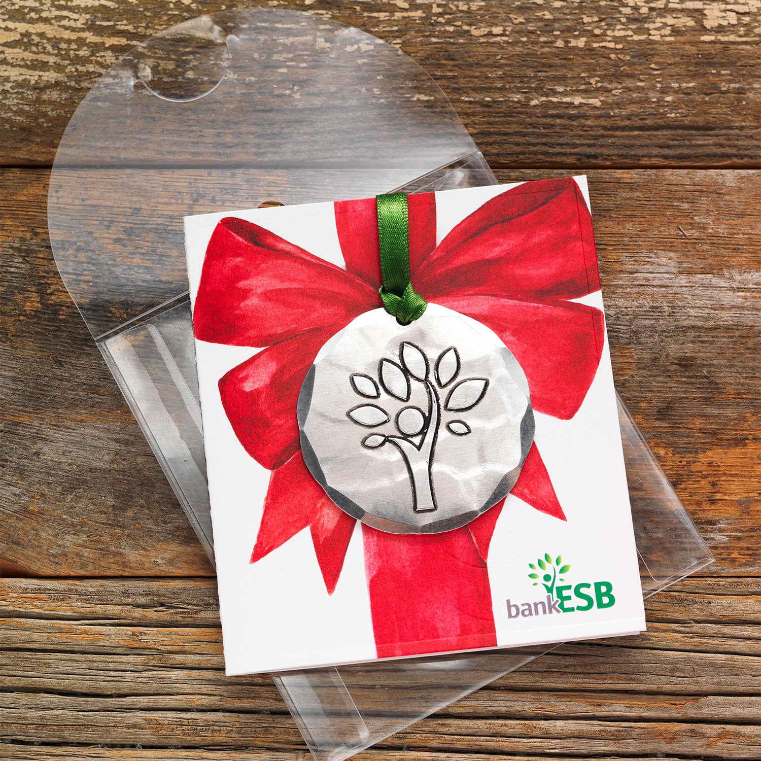 Recipients will be happy to preserve the brand they love on their tree with this custom Christmas ornament! Measuring 2.125" in diameter, this small round ornament is handcrafted in the USA and comes in three metal choices - aluminum, bronze and copper. It's great for Christmas presents, employee and customer gifts, giveaways at fundraising and non-profit events and much more. With multiple options for customizing, you can either choose from hundreds of stock designs or add your own custom brand messaging. Deck the halls with boughs of your logo this holiday season!